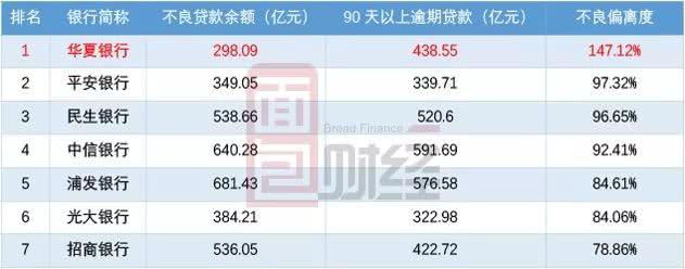 但与其他股份制银行相比,华夏银行的不良偏离度仍然偏高。由于各银行年报并未完全发布,以下为7家股份制银行的不良贷款偏离度情况: